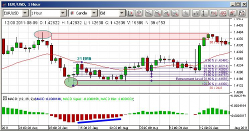 Fibonacci retracement ratios drawn. Fibonacci ratio tools will typically